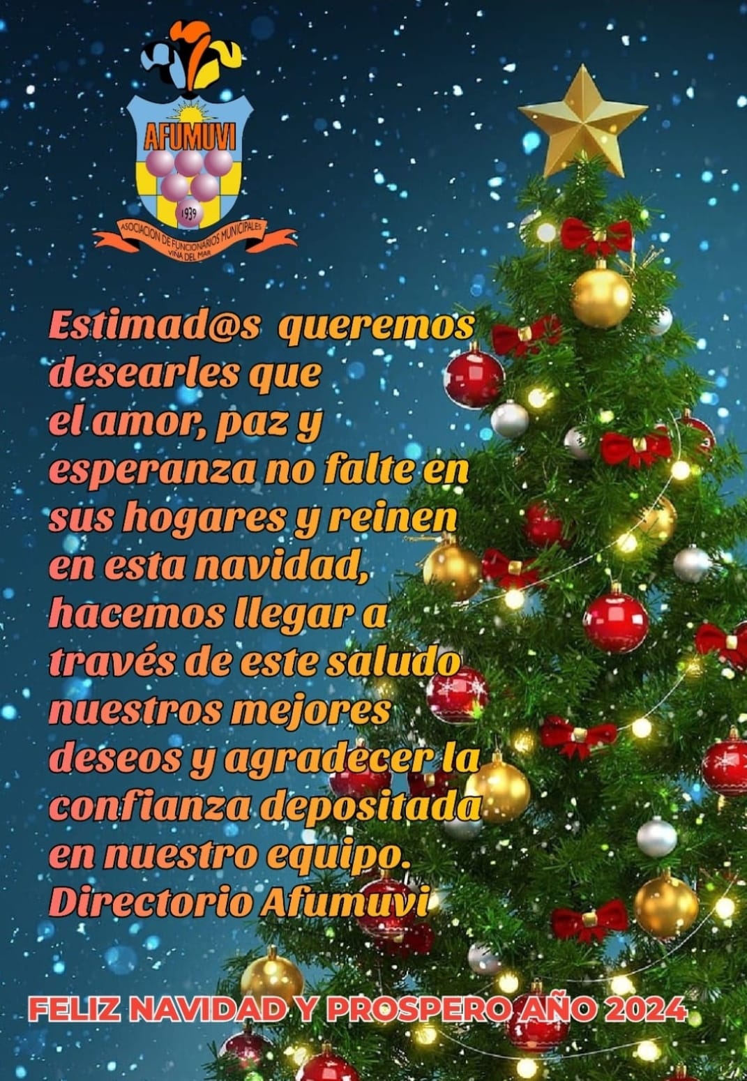 Estimad@s, queremos desearles que el amor, paz y esperanza no falte en sus hogares y reinen en esta navidad.Hacemos llegar a través de este saludo nuestros mejores deseos y agradecer la confianza depositada en nuestro equipo.